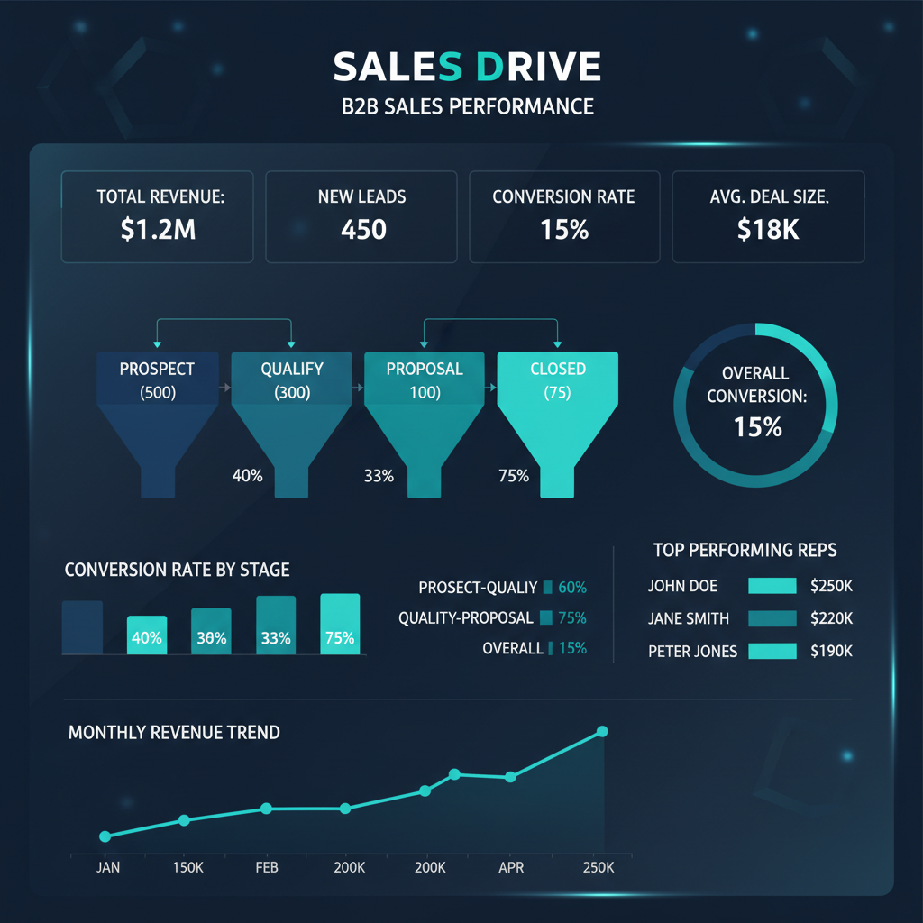 Modelo prático de dashboard de funil de vendas B2B